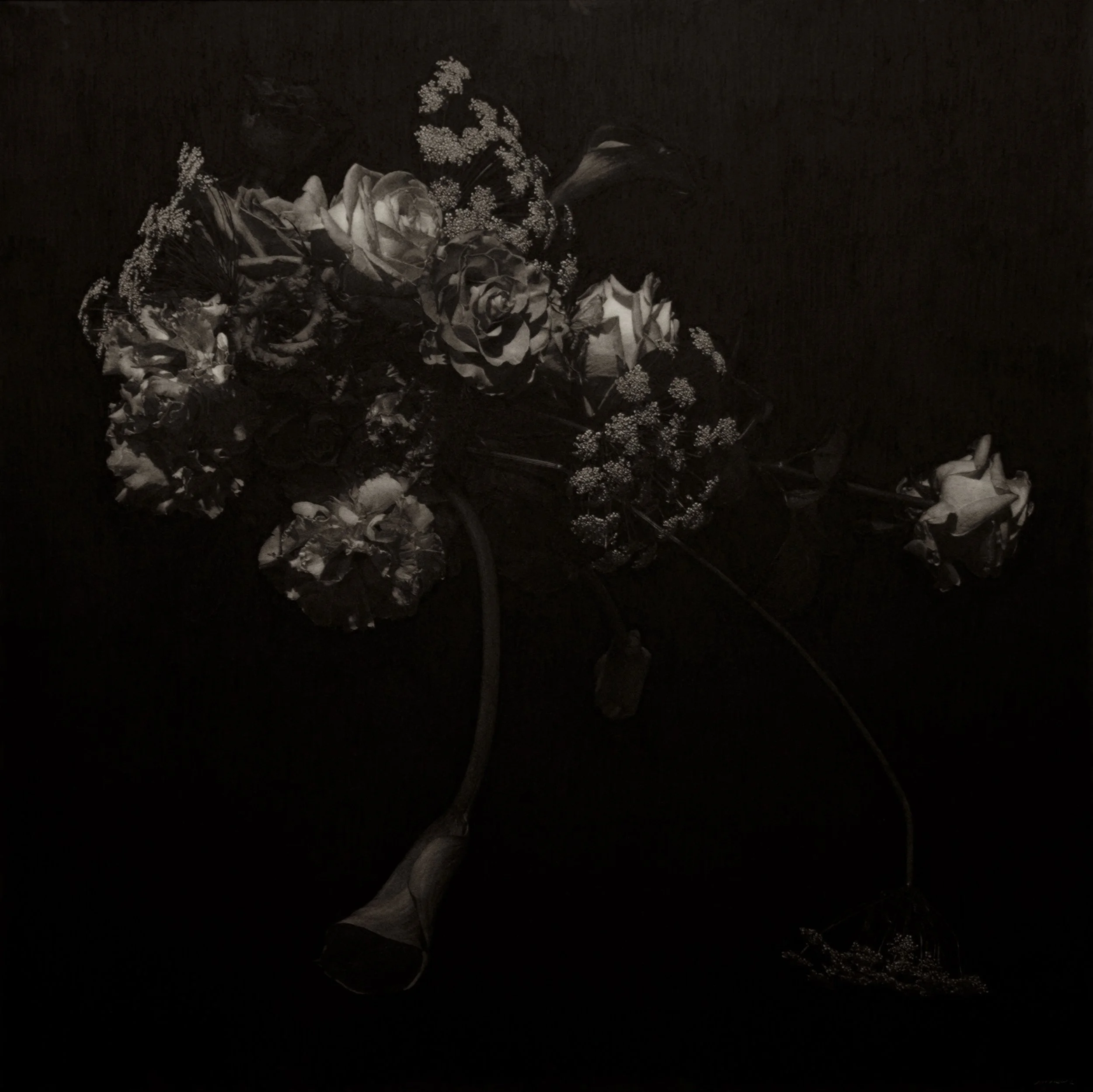 独特な佇まいが魅力の花の鉛筆画です。その他の鉛筆画と比較すると、紙目を生かした荒々しい粒状の筆跡で描かれています。紙そのものが若干黄色味を帯びているため、白薔薇などの明るい花も落ち着いた色調です。本作に使用した紙は最高級のコットン紙。末永く鑑賞いただける品質を備えています。