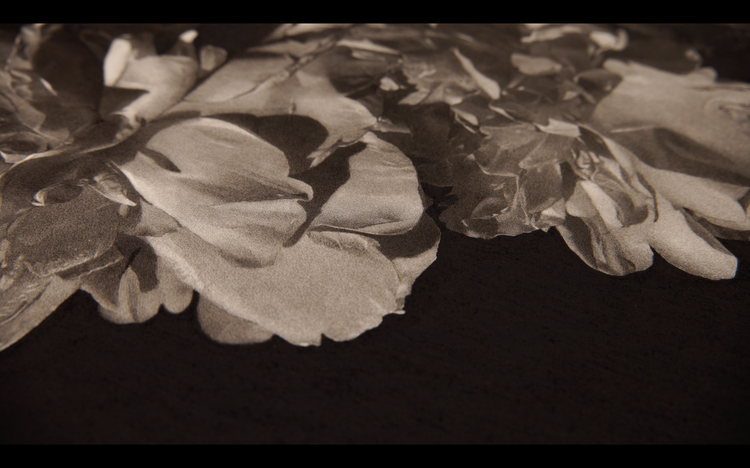 芍薬と百合を主題にした花の鉛筆画作品。紫のトルコキキョウが黒の諧調を豊かに引き立て、絵に深みを添えています。イメージカラーはピンク。本作は作家にとって二作目の花の鉛筆画であり、初の中型作品となります。フランス製木炭鉛筆を用いて描かれた絵肌には独特の深みと美しさを備えています。紙は最高級のパルプ紙を使用。長期に渡る保管にも耐えることができます。