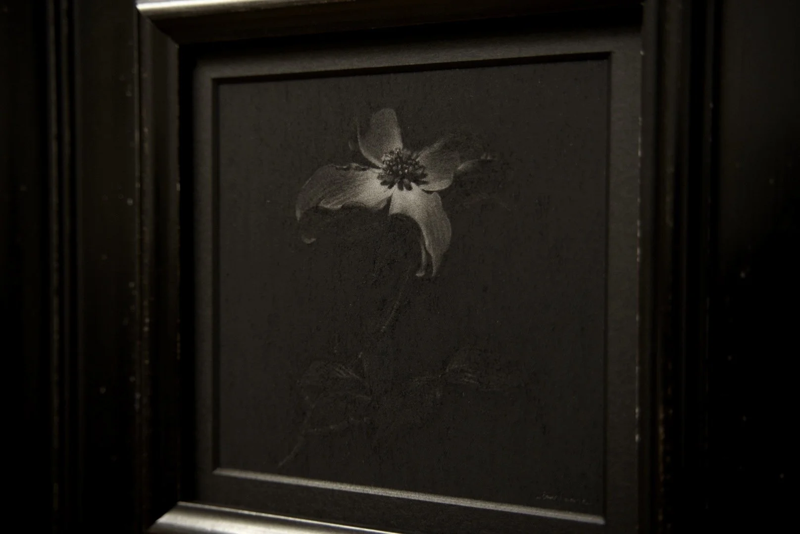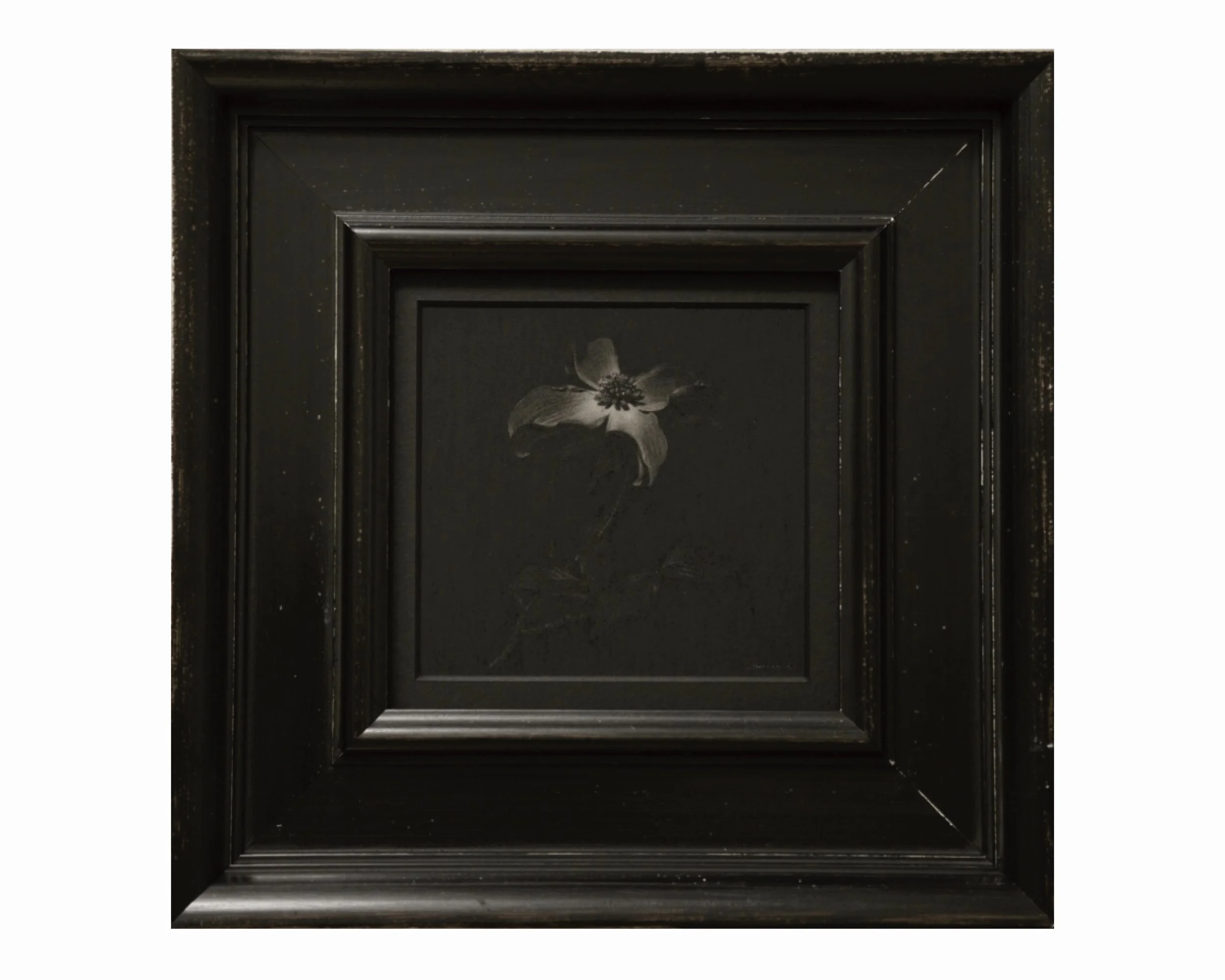 ハナミズキの花の鉛筆画。気軽に飾ることのできるミニシリーズ作品のひとつです。真ん中に集まる、小さな花の描き込みが魅力的です。紙は最高級のパルプ紙を使用。ミニシリーズ専用額縁は廃盤のため、新規ご注文分は画像と異なる仕様でのお届けとなります。