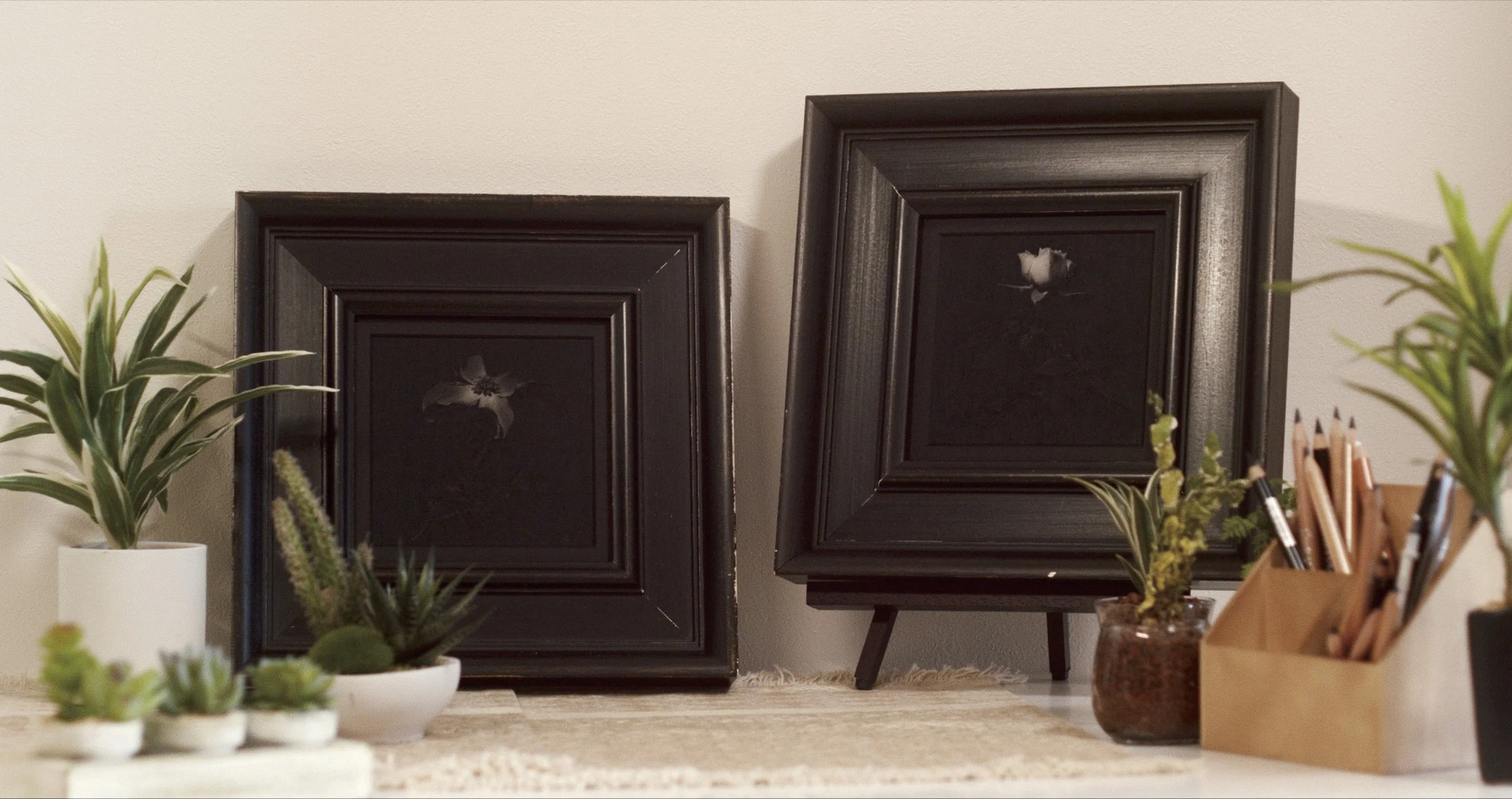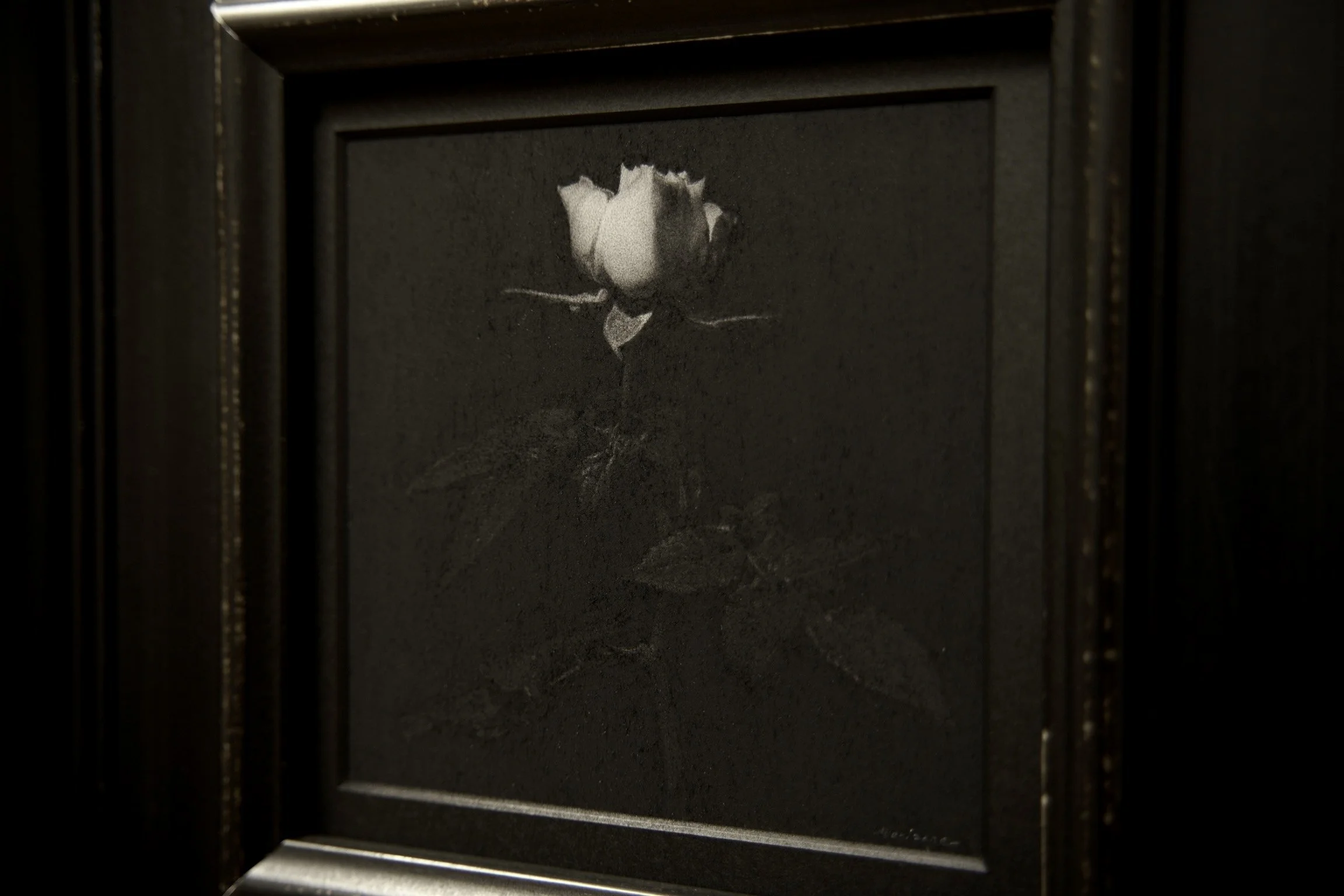 ミニ薔薇の鉛筆画。気軽に飾ることのできるミニシリーズの初作品です。本作のデザインが起点となり、各ミニシリーズのバリエーションが展開されました。紙は最高級のパルプ紙を使用。専用額縁は廃盤のため、新規ご注文分は画像と異なる仕様でのお届けとなります。